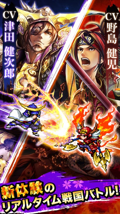 戦国時代を舞台にしたMMORPG『戦乱のサムライキングダム』。使用キャラは真田幸村や伊達政宗をはじめとする有名戦国武将や宇喜多直家・北条早雲などあまり聞き覚えのない武将まで数多く登場します。キャラカードでは美麗なイラストで描かれているキャラも、バトルでは可愛いドット絵に!ドット絵でも決して飽きることがありません。それがリアルタイムで進むバトル!制限時間内に敵を倒さないと負けとなってしまいます。最初はプレイヤーだけのバトルですが、他のプレイヤーが仲間になって共闘してくれることもあります。それが1人なのか、2人なのか、バトルにならないと分からない緊張感が楽しくなります。仲間と一緒にバトルすることでコンボが発動、より有利に戦闘を進めることができます。さらに月1回開催されるイベント「天下統一戦」は必見です。ギルドのランキング戦になっており、誰もが参加できるイベント。ランキングう上位に入ることをゲームの目標にしている方もいます。ギルド戦だけでなく毎日決まった時間に開催される合戦もおすすめ。20人という多人数でのマルチオンライン対戦になっており、たくさんのプレイヤーと一緒に楽しむことができます。バトルだけでなくキャラや兵の進化も面白い仕様。最初は騎馬兵だった兵が精鋭騎馬兵や虎兵などに進化できます。プレイヤーのレベルアップだけでなく、使用する兵の強化にも目を配る、ドット絵とCGキャラが楽しめる魅力的な戦国武将いっぱいのMMORPGです。