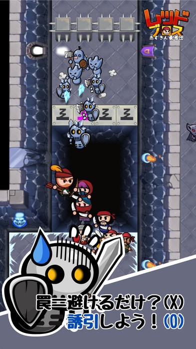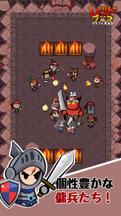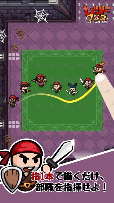 プレイヤーの役割は勇者団の指揮です。レッドブロスの特徴は大勢いるキャラクターを同時に指一本で操作できることにあります。ダンジョンの中にはトラップやモンスターがたくさん、ドキドキの冒険ができることでしょう。