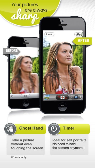 こちらも高画質のカメラアプリです。英語表記のため、少し分かりにくいですが、手ブレ補正には役に立ちそうです。このアプリは、そもそもデバイスが安定している時にしか撮影をしないため、手ブレが起こることはありません。これなら、手ブレの心配はしなくてもいいですね。また、ゴーストハンドという機能もあります。iphoneに触ることなく撮影することができます。