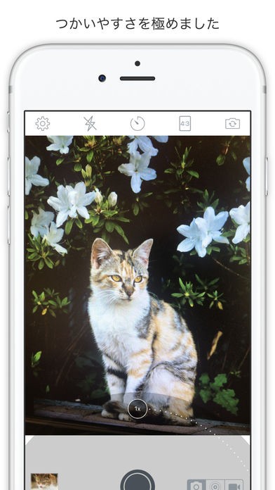 300万ダウンロードを突破したカメラアプリです。手ブレ補正については、設定で手ブレ補正にチェックを入れるだけでOK(動画のみ有効)。このアプリではその他に、ズームや無音で撮影することができる機能もあります。ズームの仕方は、ピンチイン、ピンチアウトの操作か、下に出てくるバーの移動によりできますよ。セルフタイマーは、3秒、10秒から選択可能です。その他の機能は、フラッシュやサイズ選択などシンプルなものがあります。動画も撮影できますので、便利ですよ。お子さんの運動会、動物園の動物の撮影など、思い出の手助けをしてくれること間違いないです。