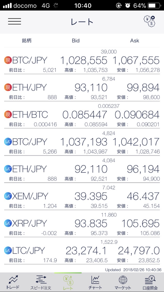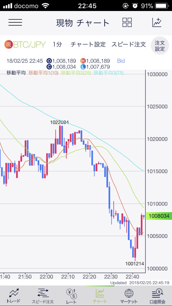 リアルタイムレートや注文一覧、約定履歴など取引するときに欠かせないさまざまな情報を表示しながらトレードを行うことが可能です。1タップで即時発注できるスピード発注は、チャートを見ながら使えるので相場変動のタイミングを逃すことなく注文できます。