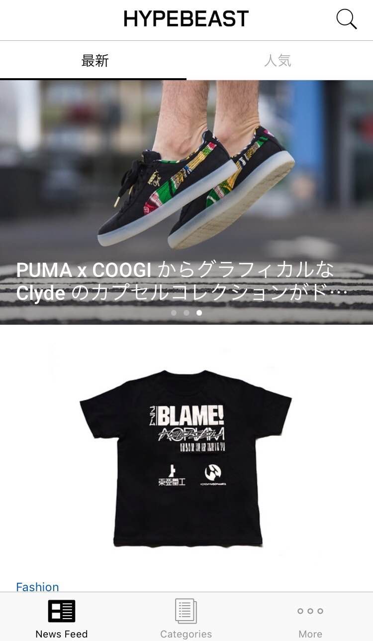 「HYPEBEAST」は最新情報はもちろん、人気の記事へのアクセスも簡単にできる作りになっています。画面下部には、カテゴリー別の記事へアクセス出来るタブもあるので、興味のある事へすぐにアクセスする事も出来ます。