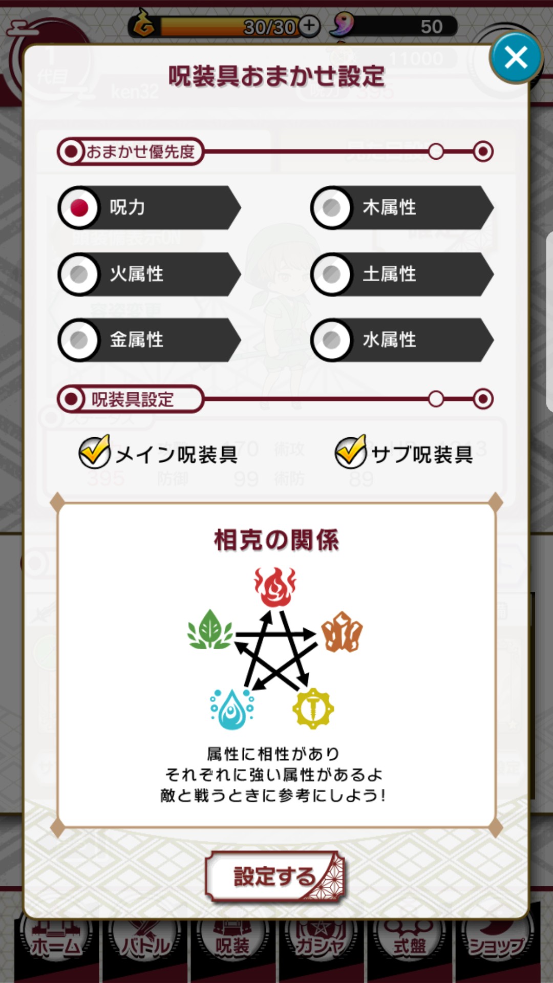 ゲーム中には呪装具という「ケガレ」に対抗する唯一の手段である装備品があり