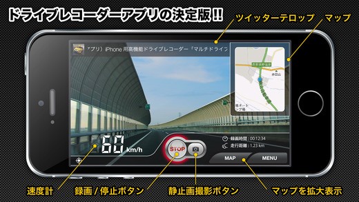「マルチドライブレコーダ」は運転中の映像をスマホに録画し、動画として保存してくれるアプリです。いざというときには、本アプリの動画が安全運転の証明になることもあるでしょう。車の運転に万全を期したいのなら、お手持ちのスマホに「マルチドライブレコーダ」のインストールが急がれます。