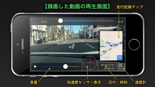 常時録画や緊急録画といった各モードに加えて、「マルチドライブレコーダ」にはiphoneの加速度センサーを利用した衝撃感知録画も備わっています。事故の前後1分間をしっかり録画してくれるので、必要な情報をすぐ提供することができるでしょう。