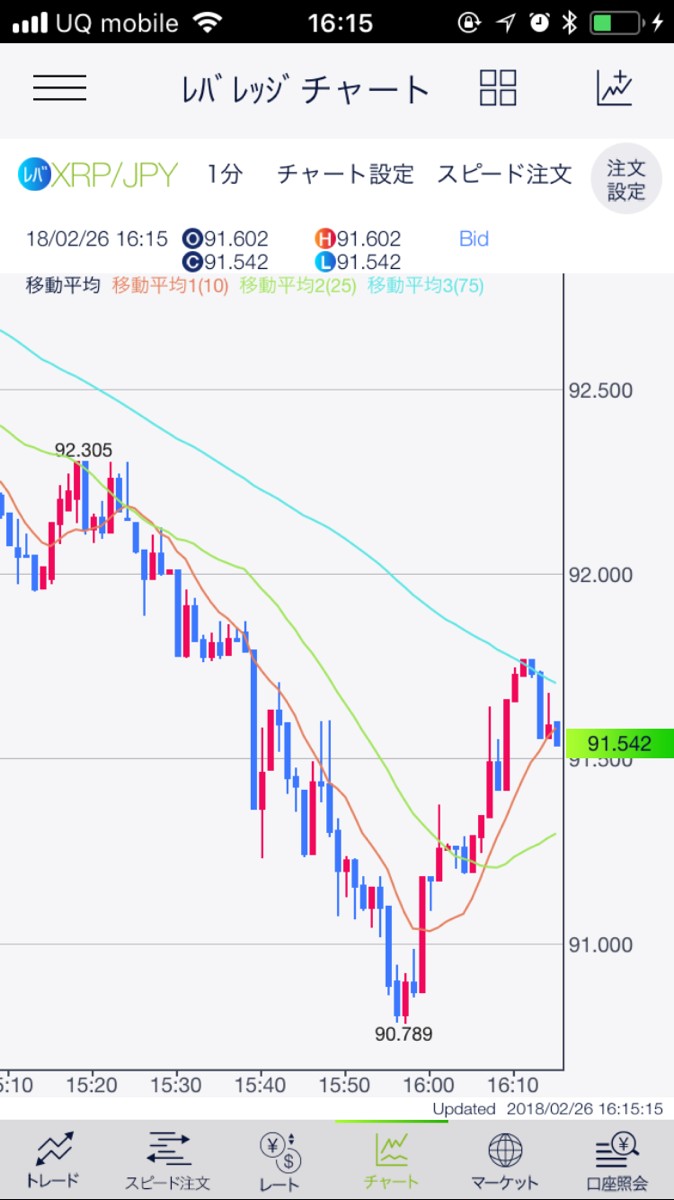 ストリーミング注文や、指値、逆指値、OCO、IFD(レバレッジのみ)、IFO(レバレッジのみ)に対応しており、自分好みの設定で決済を行うことができます。また、テクニカル指標を複数搭載した、見やすいチャートが好評。チャートを見ながら、一瞬のチャンスを逃さずに注文出来るワンタッチ機能が便利に使えます。