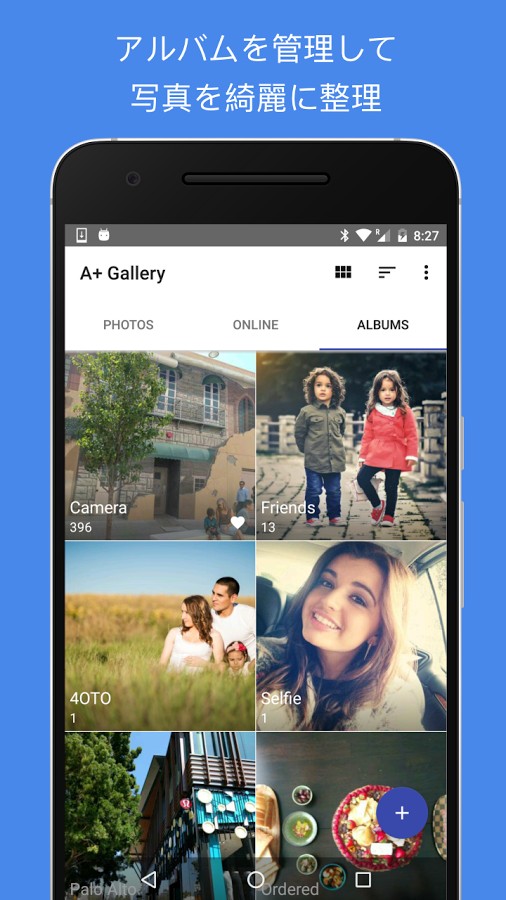 「A+ ギャラリー写真 & 動画」は世界各国で900万人以上のユーザーに愛されております。アンドロイド専用で文字通り一番の人気のフォトギャラリーアプリです。「A+ ギャラリー写真 & 動画」は他のアプリが持っていない機能があり、サクサクと操作ができることがこの動画アプリの魅力です。沢山のアプリやSNSと同期ができることもあって、写真や動画が1つに保存できるのも嬉しい点です。様々なcloudにも対応しているので、スマートホンで撮ってパソコンで管理するのも簡単です。自分の素敵なギャラリーを、つくってみんなに自慢してみましょう!