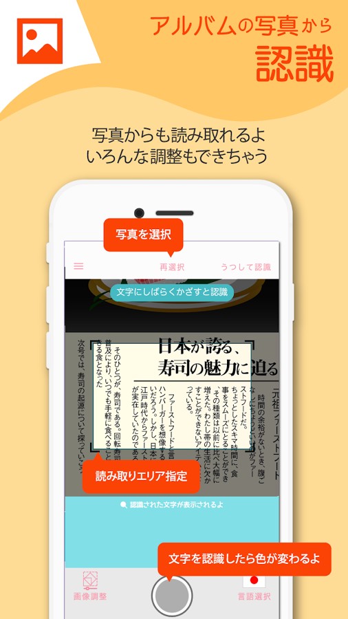 他のアプリでもよく、ありがちな「読み取り失敗!」カメラは、手ぶれなどで失敗してしまうケースが多いですよね。スムーズに作業に進める為にも、読み取を失敗しないコツを知っておくことで、作業もスムーズになります!このアプリでの、読み取りのコツは、読み取りたい文字に対して真っすぐカメラを向け、カメラを構えます。そして、青い枠の中にくっきりと読み取りたい文字が映るように位置を整え、ズームの機能やコントラストを自分で確認しながら調節し、ピントが合うように撮影距離を調節し写真を撮ると失敗しなく、スムーズに作業が進みます!ピントが合わない!という場合には、画面内をタップすると、オートフォーカスが作動しますので、ピントが合わない場合は画面をタップしてみてくださいね。是非、試してみてください。私は、この作業をする事で、読み取り失敗の数が減り、スムーズに作業に取り掛かれています!