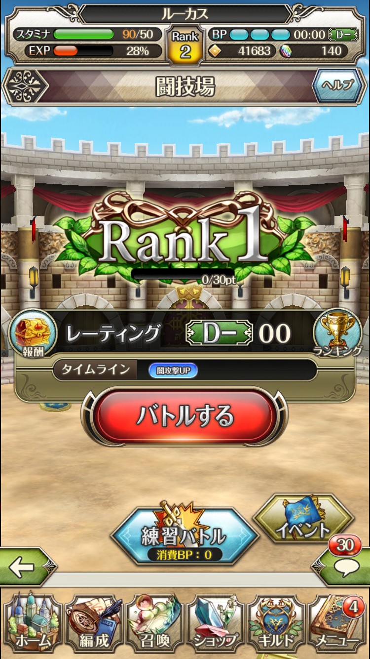 闘技場も初めての人と対戦すると報酬が貰えるので、自分の最強メンバーでデッキを組み、たくさんのプレイヤーに挑みましょう!