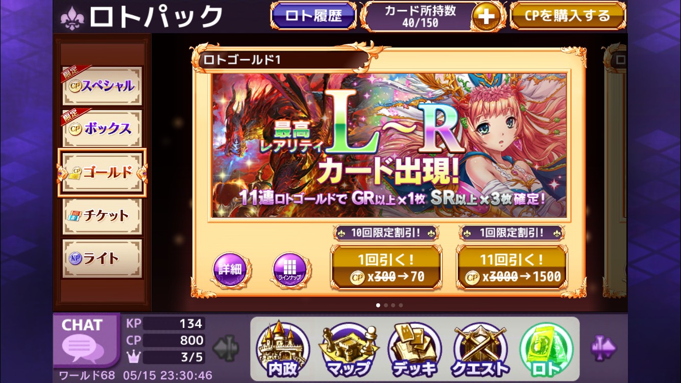 ロトを引くにはCPというものが必要で、クエストをクリアしたり毎日ログインすることで貰うことが出来ます。