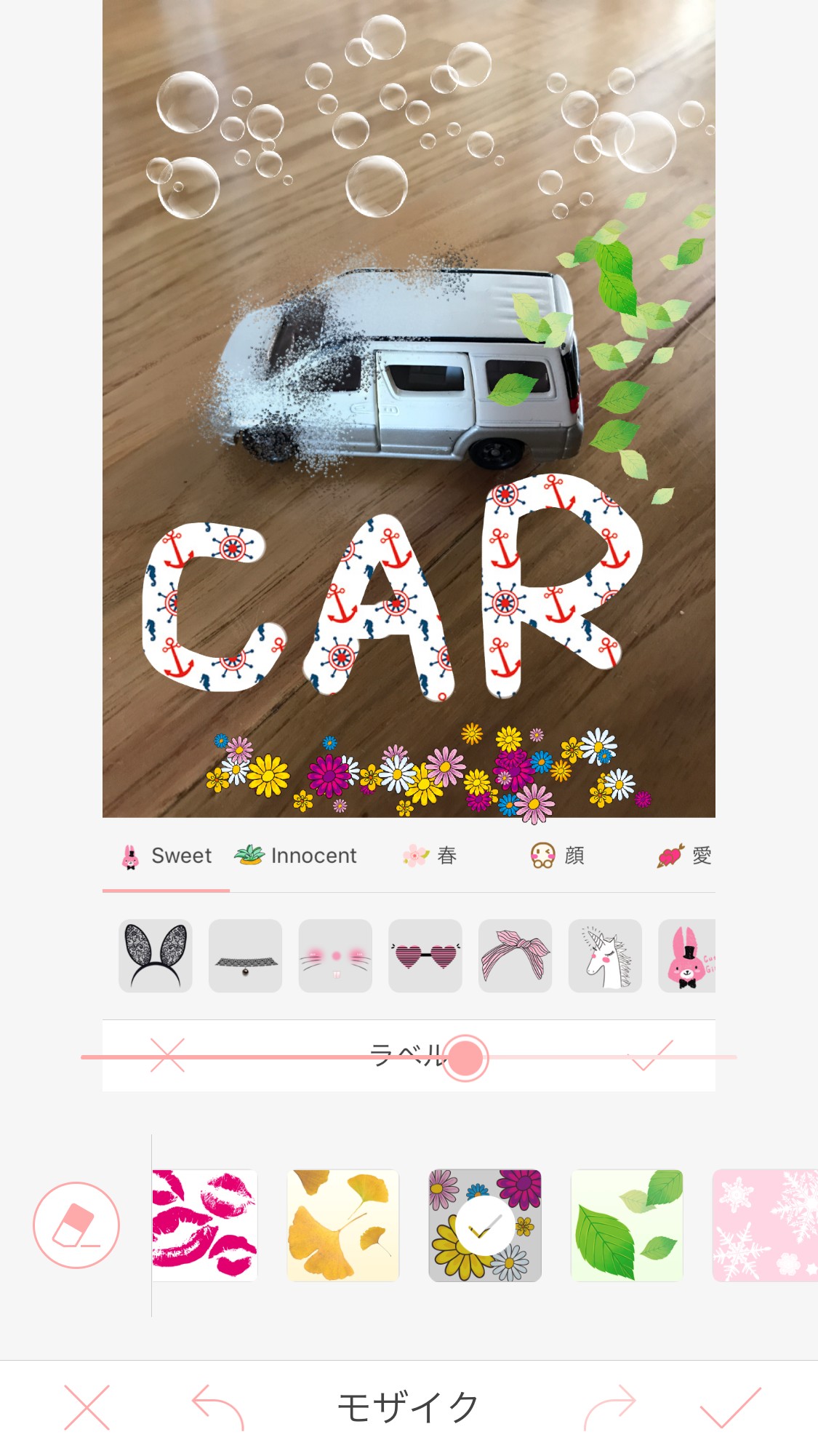 「ラベル」はスタンプのような感じです。可愛いウサギ耳のスタンプや文字スタンプなど種類も豊富です。