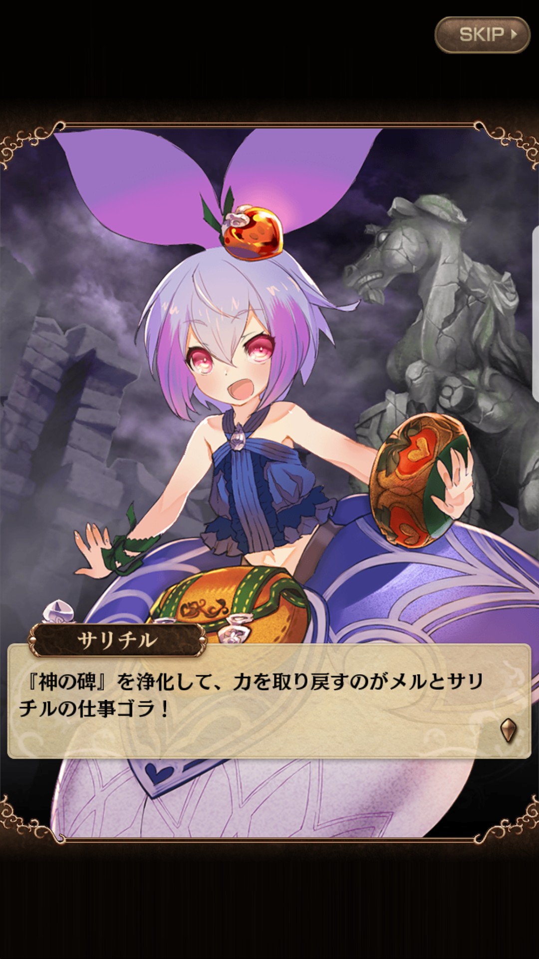 神の碑の浄化をし力を取り戻すのが仕事という「メル」と「サリチル」