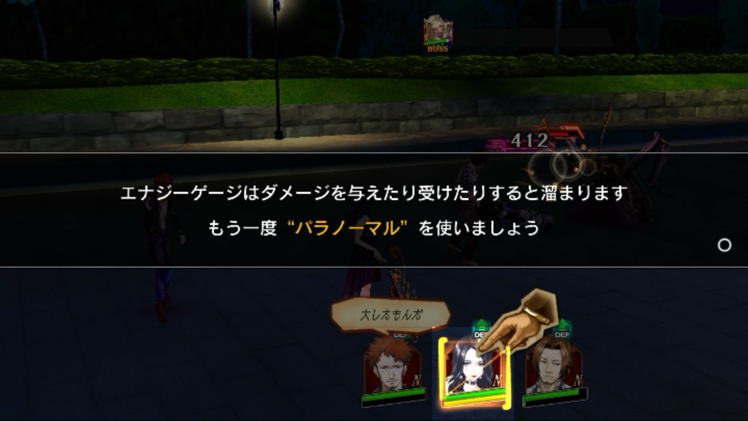怒られてしょんぼりしていると…なになに。「エナジーゲージ」というものが溜まった?よく分かりませんが、必殺技ですね!きっと!指示通りタップして「パラノーマル」とやらを発動してみます!