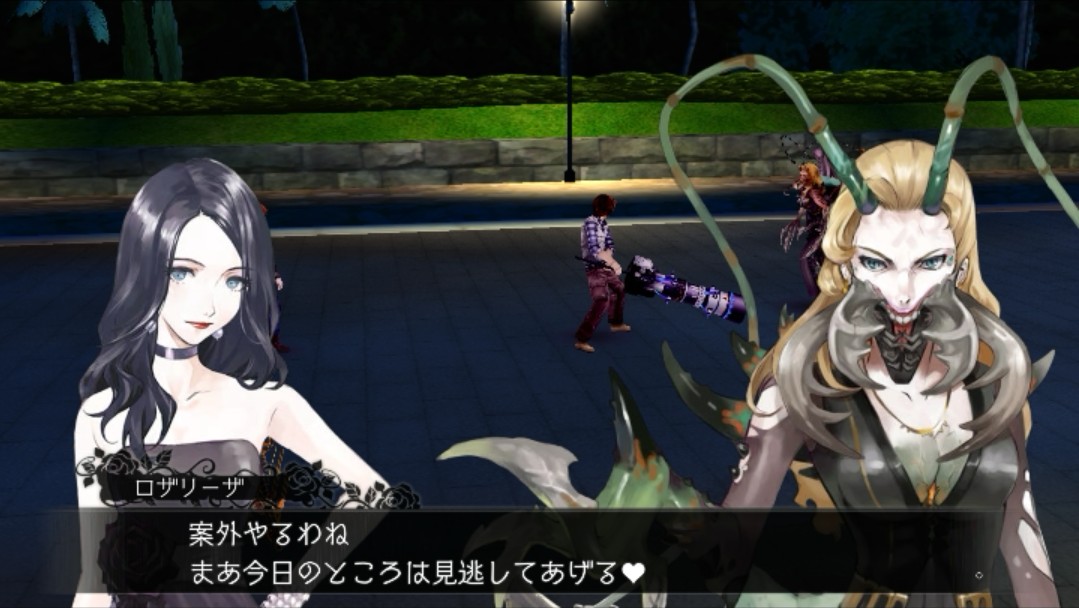 同じくホテルから出てきた銃のような武器を持った女の人も、バケモノになった女の人を攻撃して、2人はバケモノとなった女の人と戦っています。