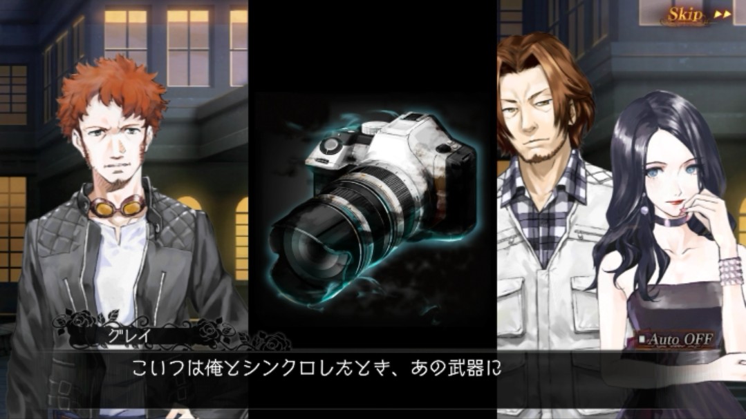 カメラっぽい、とは思っていたのですが、グレイが使っていた武器はやはりカメラが変身したものだったようです!持ち主とシンクロしたときに、さっきみたいな姿になるようです。なるほど。