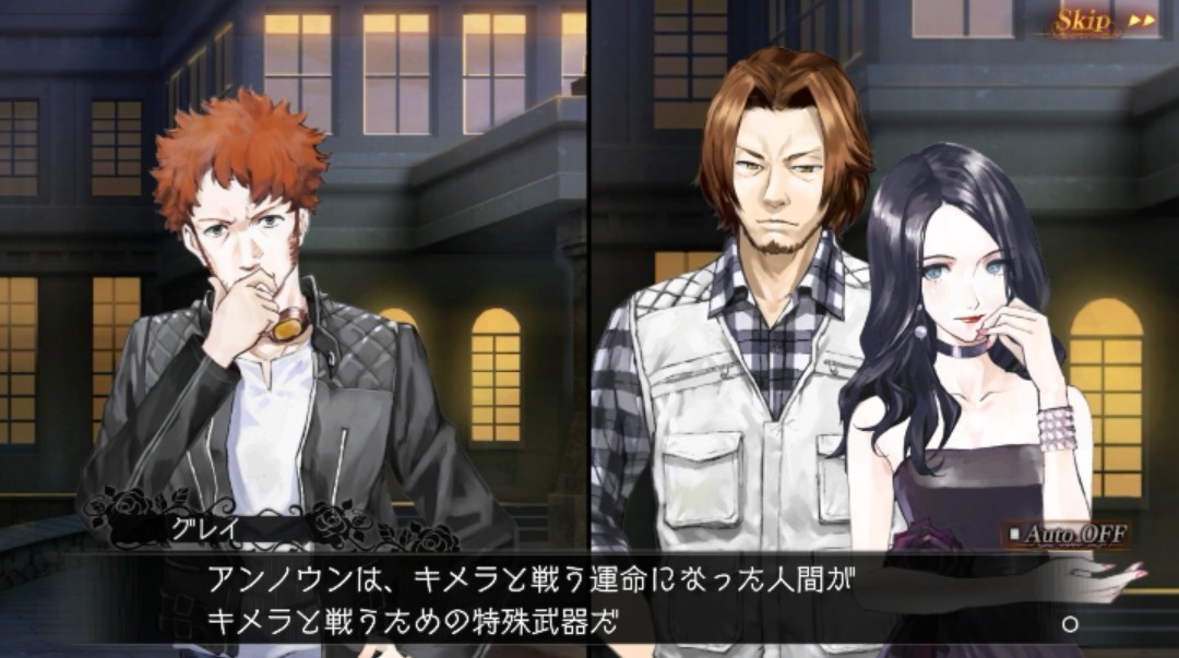 さっきの武器は「アンノウン」といって、キメラ(さっきの女の人みたいなバケモノ)と戦う運命になった人間が持つ武器…。つまり、「アンノウン」を持てたらキメラと戦えるわけですね!
