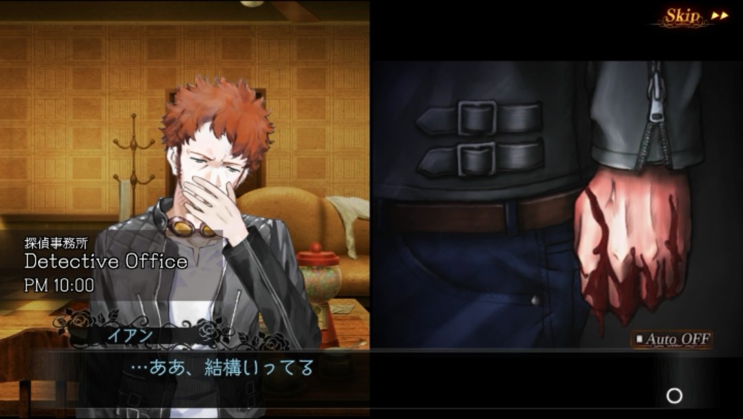 「探偵事務所」へと場面が変わりました。イアンの事務所でしょうか?イアンはさっきの戦いで怪我をしたようです。結構リアルで痛そうですね…。