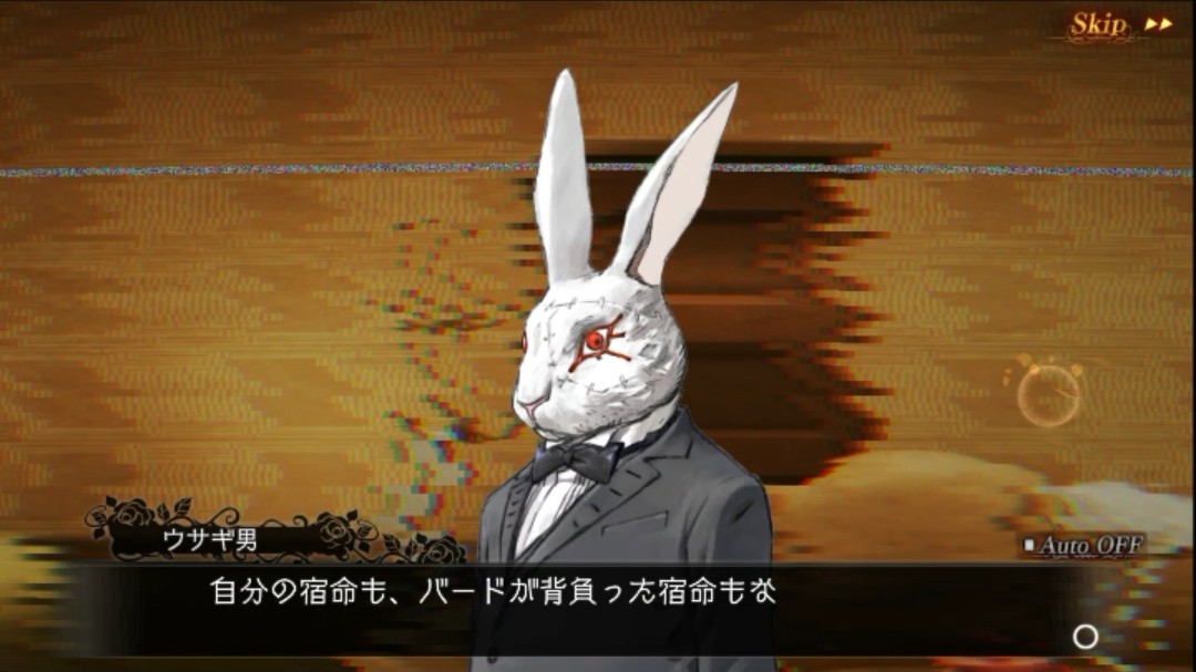 リチャードとの会話が終わると、ルーペがアンノウンに変わったときの謎の声が聞こえ、謎の声の正体が分かりました。それがこの「ウサギ男」です。しかもこの「ウサギ男」、いろいろと事情を知っているようで…。キメラとバードが関係している!?