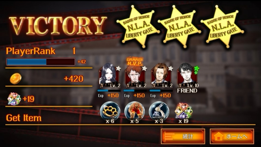 クエストクリアすると経験値が貰えて、キャラクターたちのレベルが上がりました!アイテムも入手したようです!
