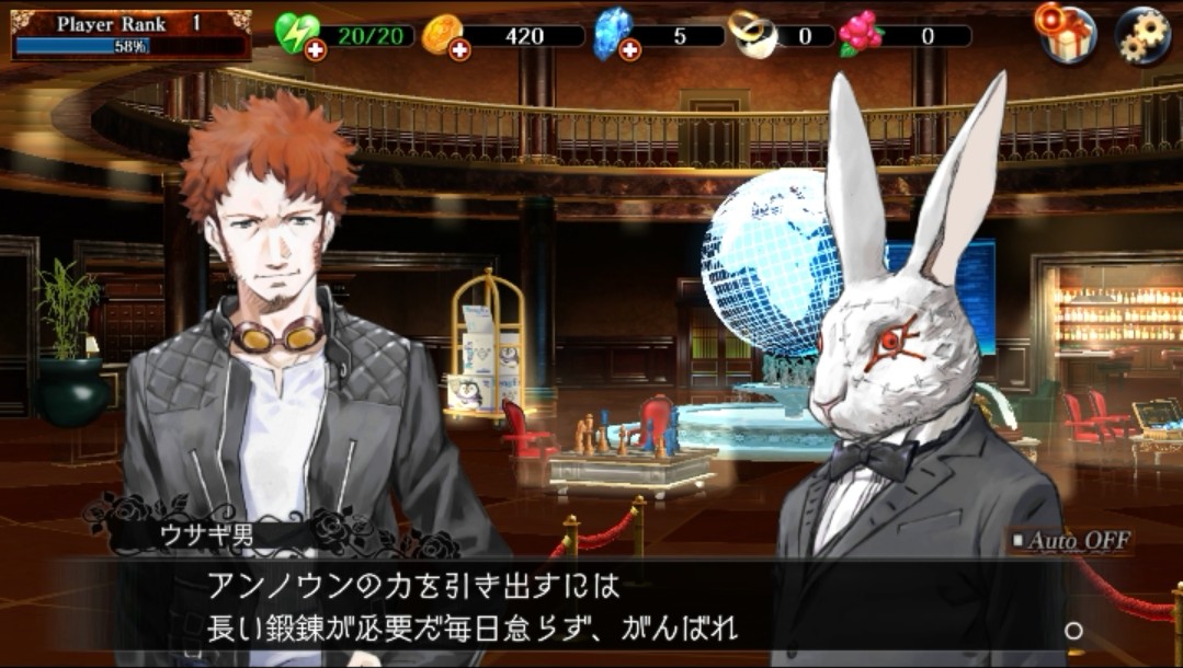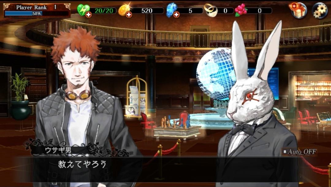 クエストをクリアすると自動的にホーム画面に戻りました。ウサギ男がなにやら教えてくれるようです。