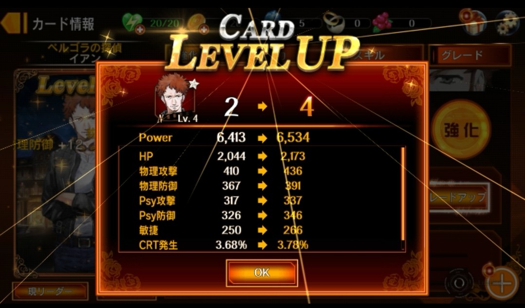 イアンのカードがレベル4になり、パラメーターが上昇して強くなりました!