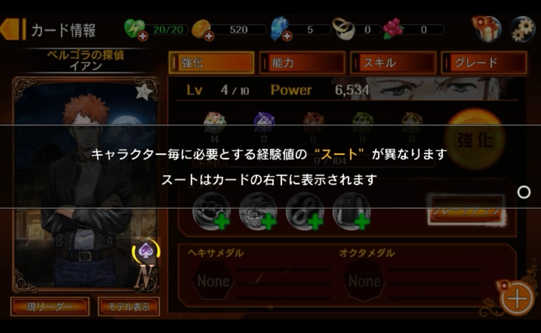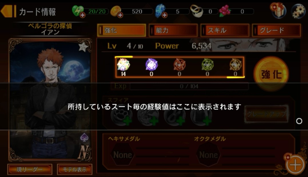 キャラクターごとに必要とする経験値の「スード」が異なるようです。スードはカードの右下に表示されている、とのことですのでイアンのスードは「スペード」ですね。