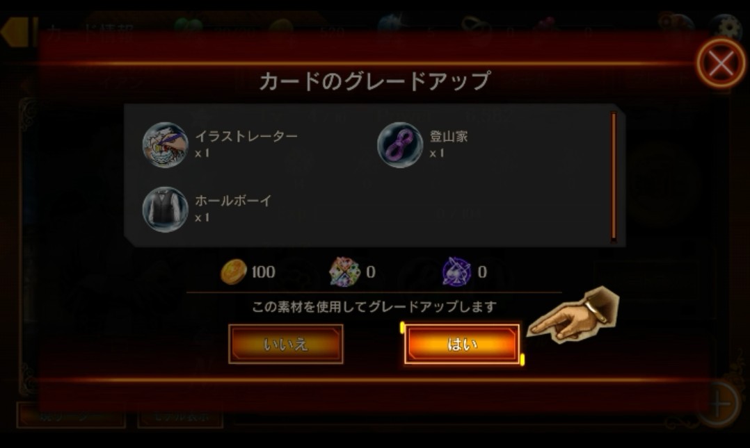 このように「強化」や「グレードアップ」をして、キャラクターカードを強を強くしながらアンノウンの力を引き出していく、ということですね!クエストを進める度に、出現するキメラも強くなっていきます。強敵なキメラにも勝っていけるように「強化」や「グレードアップ」を忘れずにしていきましょう!