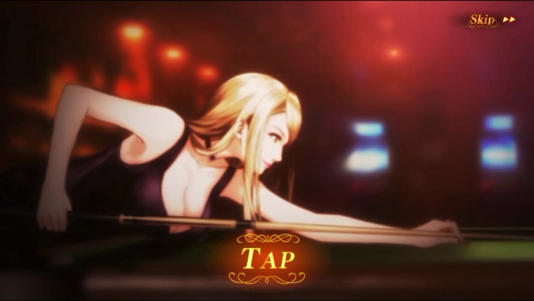 セクシーなお姉さんがビリヤードをするモーショーンが流れ、ビリヤード玉を打つタイミングを画面をタップして決めます。タップします!