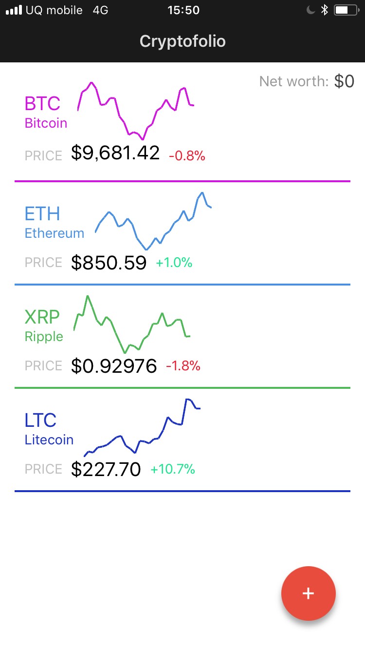 取引している通貨を整理することができる資産管理アプリです。今自分が持っている通貨、時価総額、ポートフォリオなどを見ることができます。ビットコインはもちろん、複数のアルトコインのチャートを確認することが可能。登録方法はAdd currencyのボタンを使って追加するだけと至ってシンプルです。保有通貨のみの情報だけで管理したり、他の通貨に興味があれば仮想通貨に関する最新情報をキャッチすることもできます。