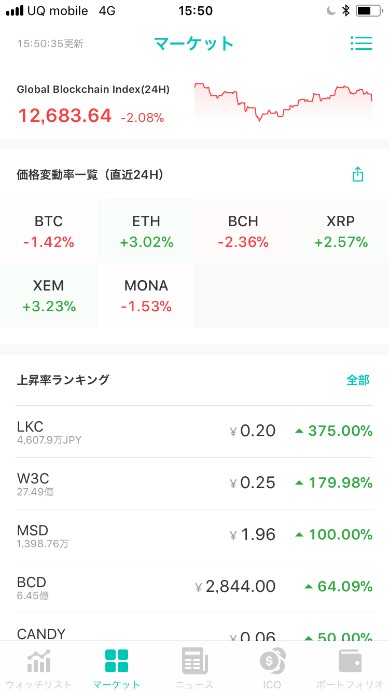 あらかじめ設定をしておけば、1日1回価格変動の通知を受けることができます。価格変動は秒刻みで更新されていくので、まさにリアルタイムでの値動きを確認することが可能です。マーケット速報や価格の上昇率ランキングなど、参考になりそうなコンテンツも多く含まれているので、通勤や通学中にもマメにチェックするといいでしょう。