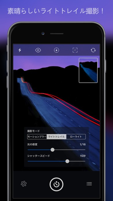 「スローシャッターカメラ」には長時間露光をサポートする機能に加えて、モーションブラ-やライトトレルといったさまざまな機能がそろっています。それらを1つ1つ吟味して利用してみれば、さらに魅力的な写真の撮影につながるでしょう。