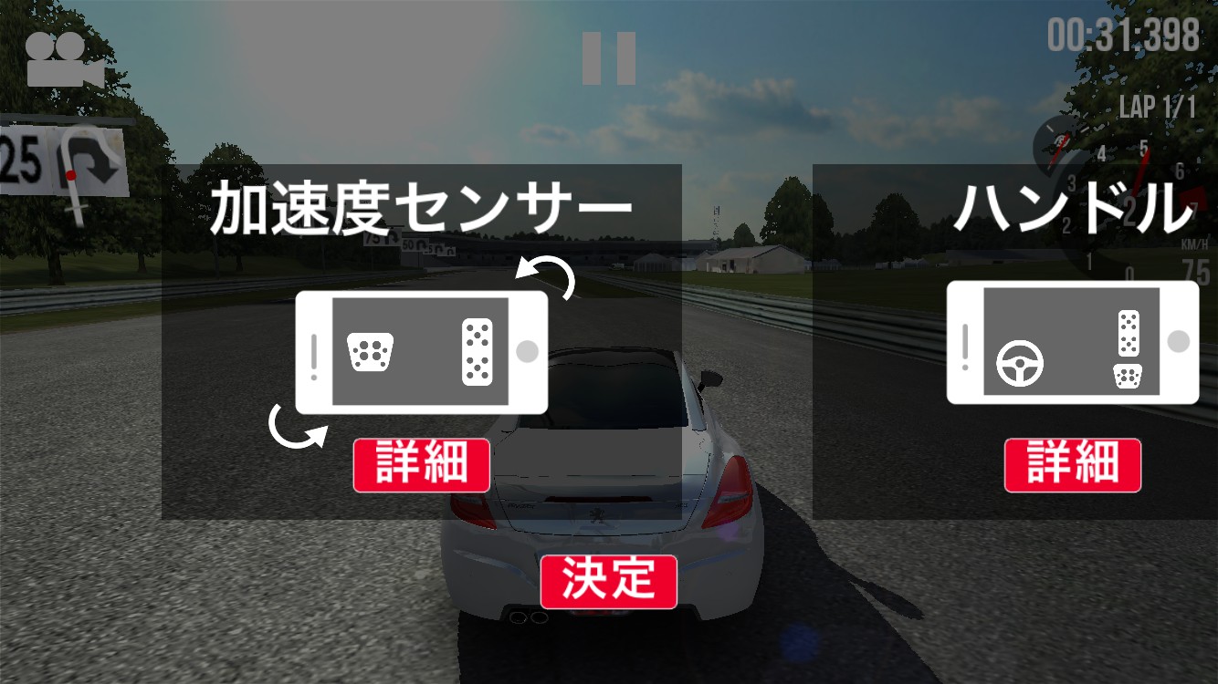 レーシングゲームというと、アクセル、方向キーなどのボタンで操作するものが多いですよね。このアプリでは、好きな操作方法を選ぶことができます。一般的なアクセルや方向キーなどをタップして操作する方法もあれば、なんとスマホのセンサーを使った操作もあります。右を傾ければ右に、左を傾ければ左にハンドルを回すように走るんです!まるでスマホがハンドルになって運転をしているような感覚ですよね!運転が好きな人も、運転したことがない人も、車のリアルな乗り心地を体験できそうですね!ゲーム中に運転をストップして操作方法を切り替えることもできるので、いろいろ試してみてください。