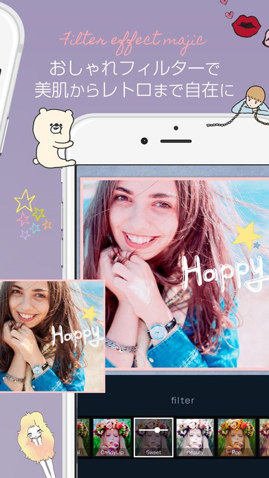 とってもガーリーで可愛くデコレーションが出来るアプリです。