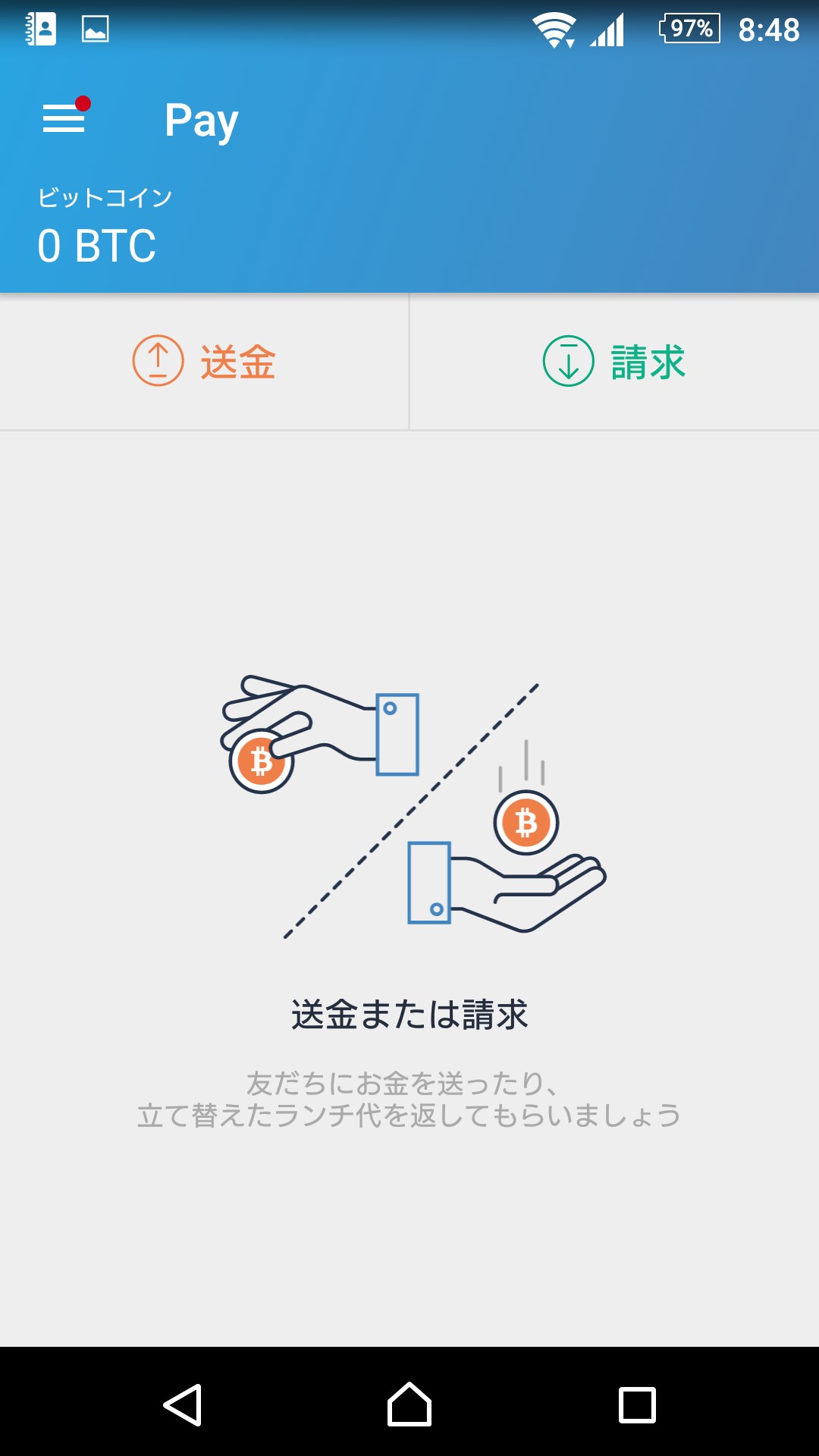 Pay機能を利用することで、簡単にビットコインを送金することができます。利用できるのは、メールやLINE、Facebookです。メッセンジャー機能を使えば、ビットコインを送金した際や受け取った際に、メッセージを同時に送信できます。