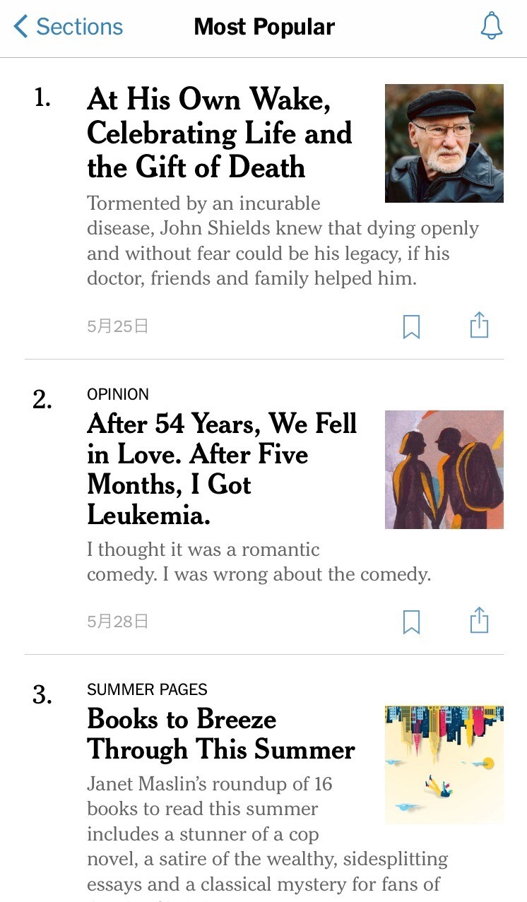 アプリではトップニュース欄に始まり、政治はもちろんサイエンス、ヘルス、スポーツ、アート、映画、ファッション、旅行、結婚など、ここには書ききれないほどのトピックに分かれているので読みどころ満載です。