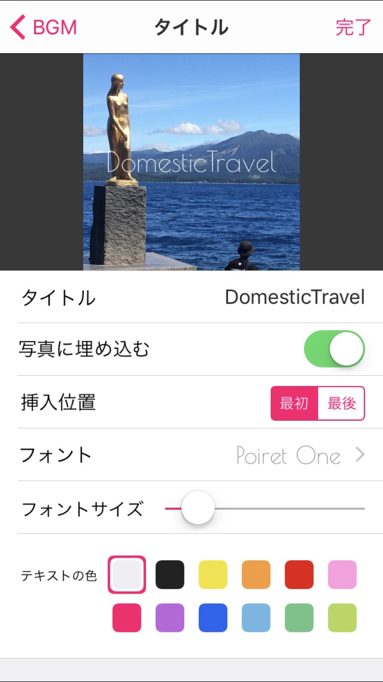 最初に入れるか最後に入れるかの選択に加え、文字の大きさや色も選べるので物足りなさもありませんでした。
