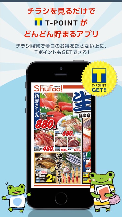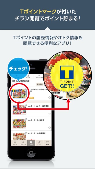チラシをタップすると、Tポイントゲットの表示が。