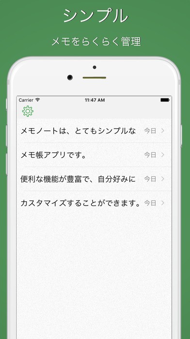 iPhoneで人気のあるメモ帳です。こちらも軽い作りで、不要な機能はいっさいないシンプルな作りが人気の秘訣です。例えば、Twitterのメモ書きに最適で、文字数表示が付いています。また、書いたメモはそのまま各種SNSに投稿できちゃうお手軽さ。コピペすら不要という便利な作りになっています。さらに、パスワードの設定ができるので、人には見せられないメモがあれば、パスワード設定さえすれば見られる心配無しという気がきいた機能まであります。いろいろごちゃごちゃした機能はメモ帳にはいらない!というシンプル指向の方にはうってつけと言えるでしょう。