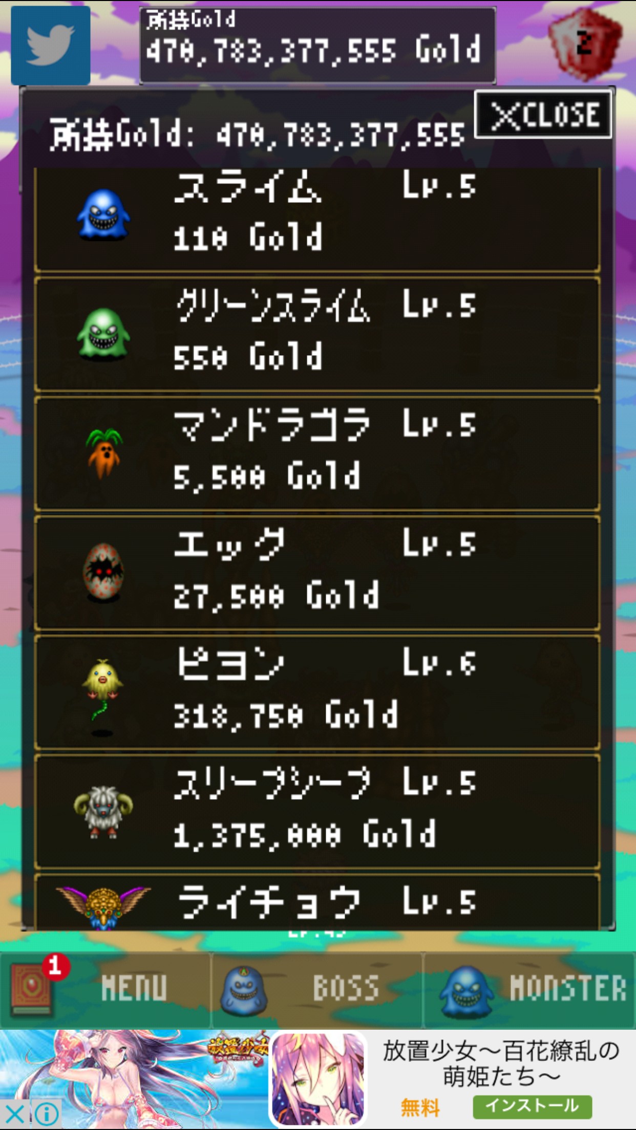ゴールドでモンスターのレベルを上げることで、獲得時のゴールドが増えます。