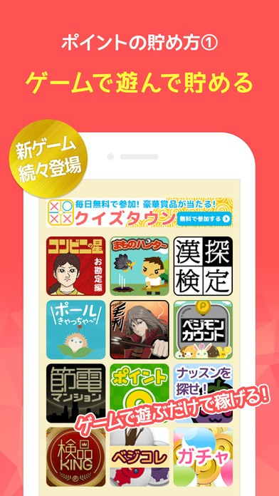 アプリ内で紹介されている無料ゲームで遊ぶだけで良いんです。普通ならゲームをするのにお金を払わなければならないのに、逆にお金が入ってくるなんてビックリ!これはゲーム好きの方にはうってつけですね!