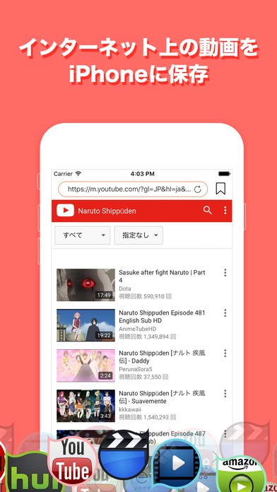 このアプリは、インターネット上にあるYouTubeなどの動画サイトにある動画を、