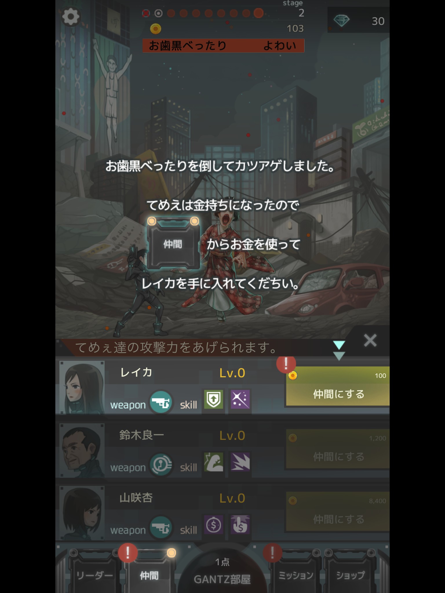 たまったお金を使ってレイカを雇います。こちらもおなじみのキャラクターですね。この他、画面にも鈴木良一、山咲杏が見えるようにGANTZに登場したあのキャラクターたちも登場するみたいです。
