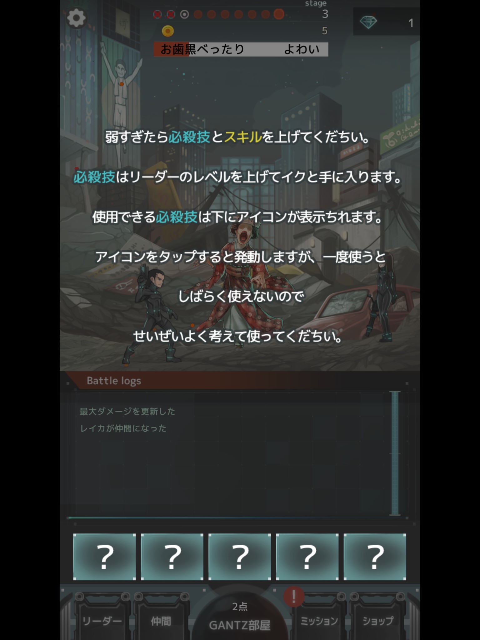 簡単に遊べるだけでなく、スキルや必殺技と言ったキャラ強化の要素もあるのでGANTZキャラを育てより強い星人に挑むという楽しみもちゃんとあるのがいいですね!