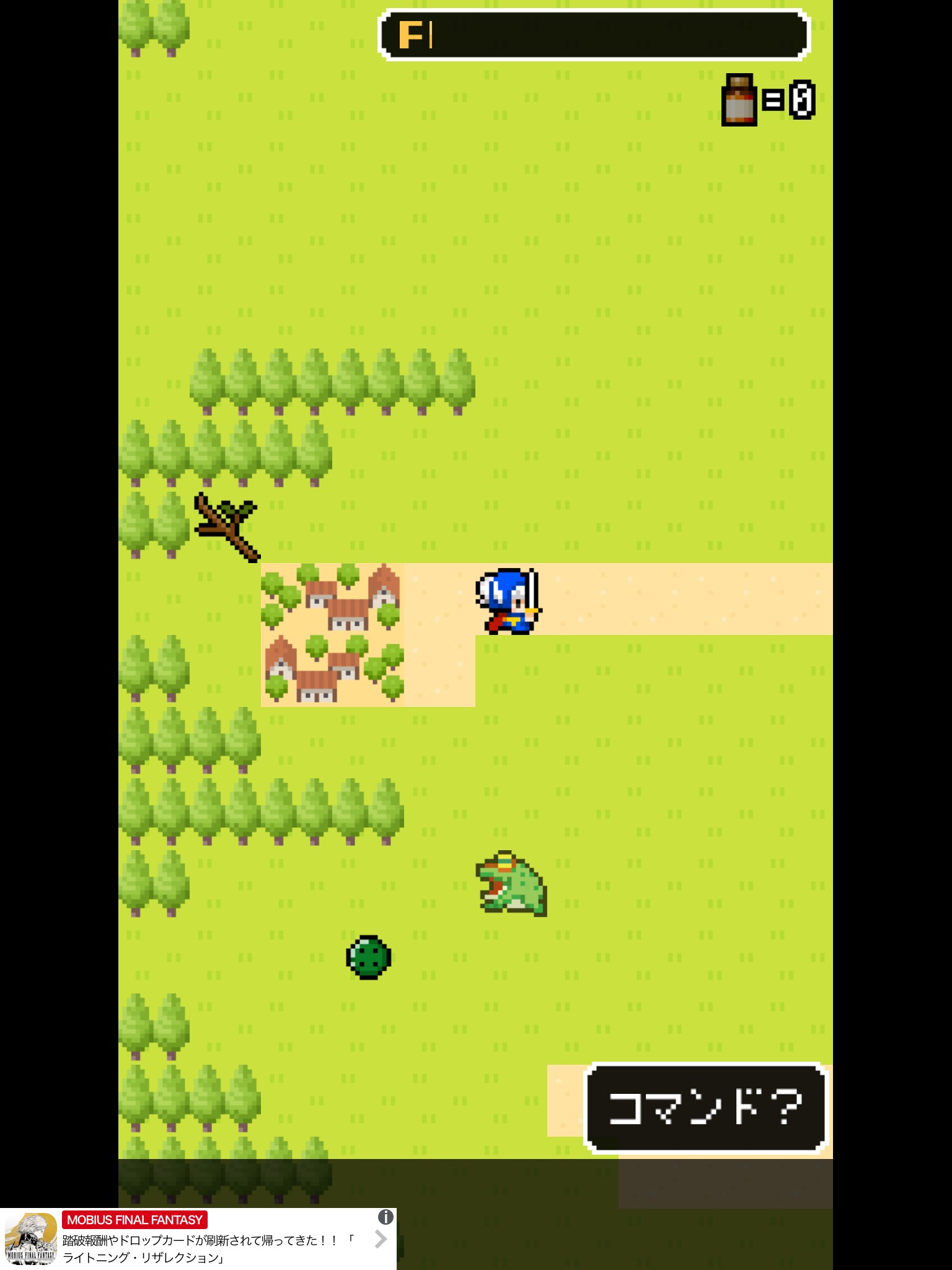 町の外に出るとアイテムが落ちていたりモンスターがいたりします。アイテムは落ちている位置まで勇者を動かすだけで入手することができます。時間が経つと自然とポップするので散策がてら拾ってみるのもいいでしょう。