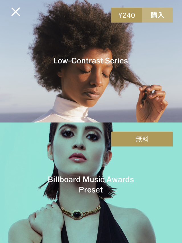 アプリ内の「ショップ」では、さらに写真を綺麗に仕上げる為のプリセットやツールを無料・有料でダウンロードして使うことができます。
