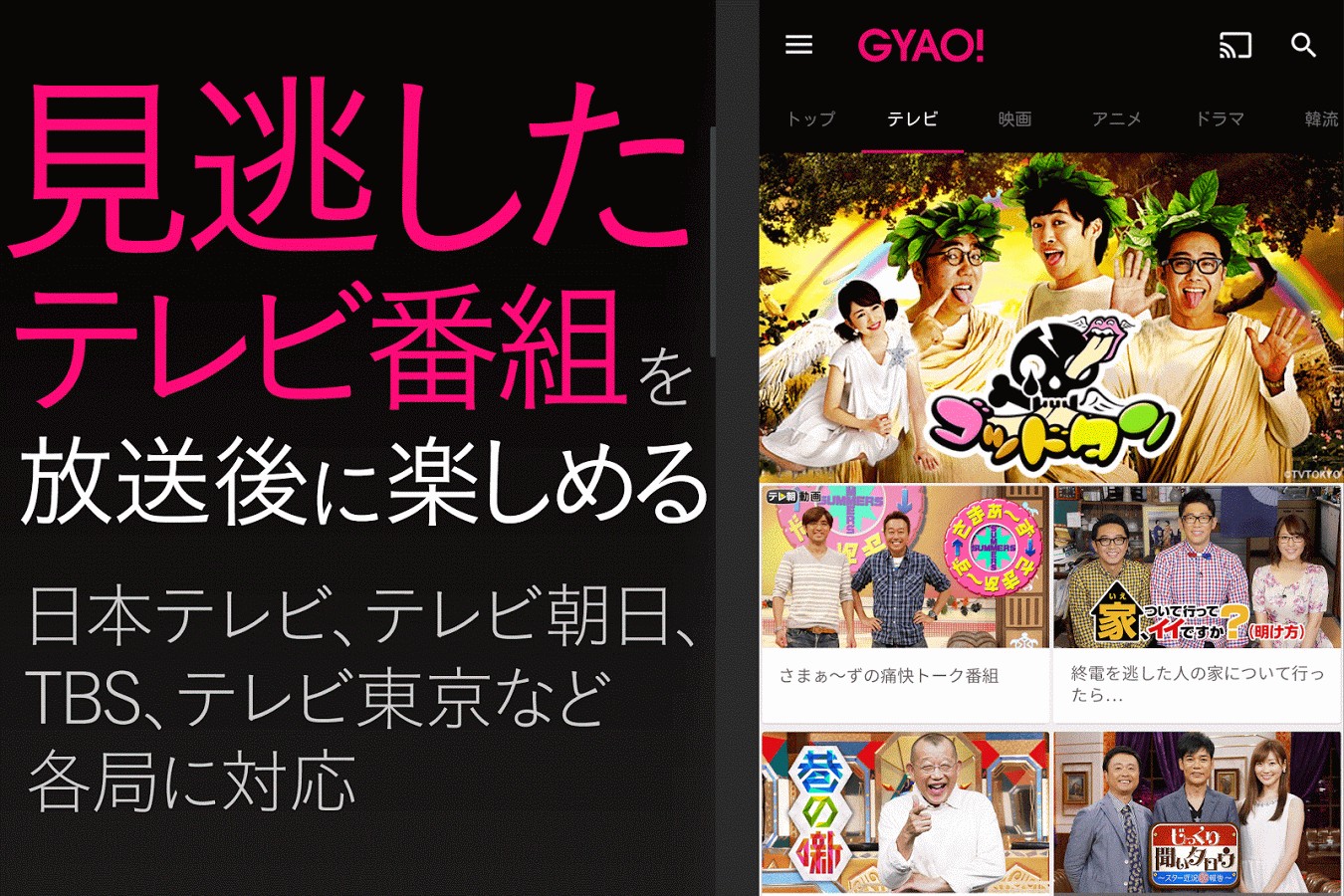 【GYAO!無料で動画が楽しめる。さらに定額&見放題も充実】