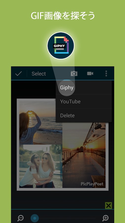 多くの方がインスタグラムやツイッター等のSNSを利用していますが、写真と動画をひとまとめに出来たらと思いませんか?このアプリはそれが可能です。もちろんGIFアニメーションも組み合わせ、合成が可能ですので人目をひくこと間違いなし。またこのアプリの凄いところは、Youtube上の動画もコラージュ出来ること。一部著作権保護のため使用できないものもありますが、それを覗けば自由度がかなり高いといえます。動画はループ再生、同時再生も可能。またフィルターを動画にかけることが出来るので、お祝いなどに雰囲気を変えて送ってみるのも素敵ですね。話題の『PicPlayPost』。ぜひ、活用してSNSでの話題をさらってみてください。
