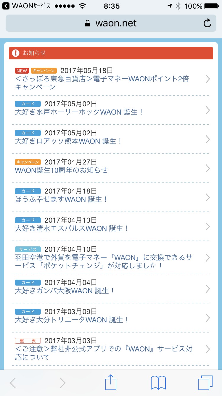 「WAONサービスアプリ」には、WAONカードに関するさまざまな情報が載っています。