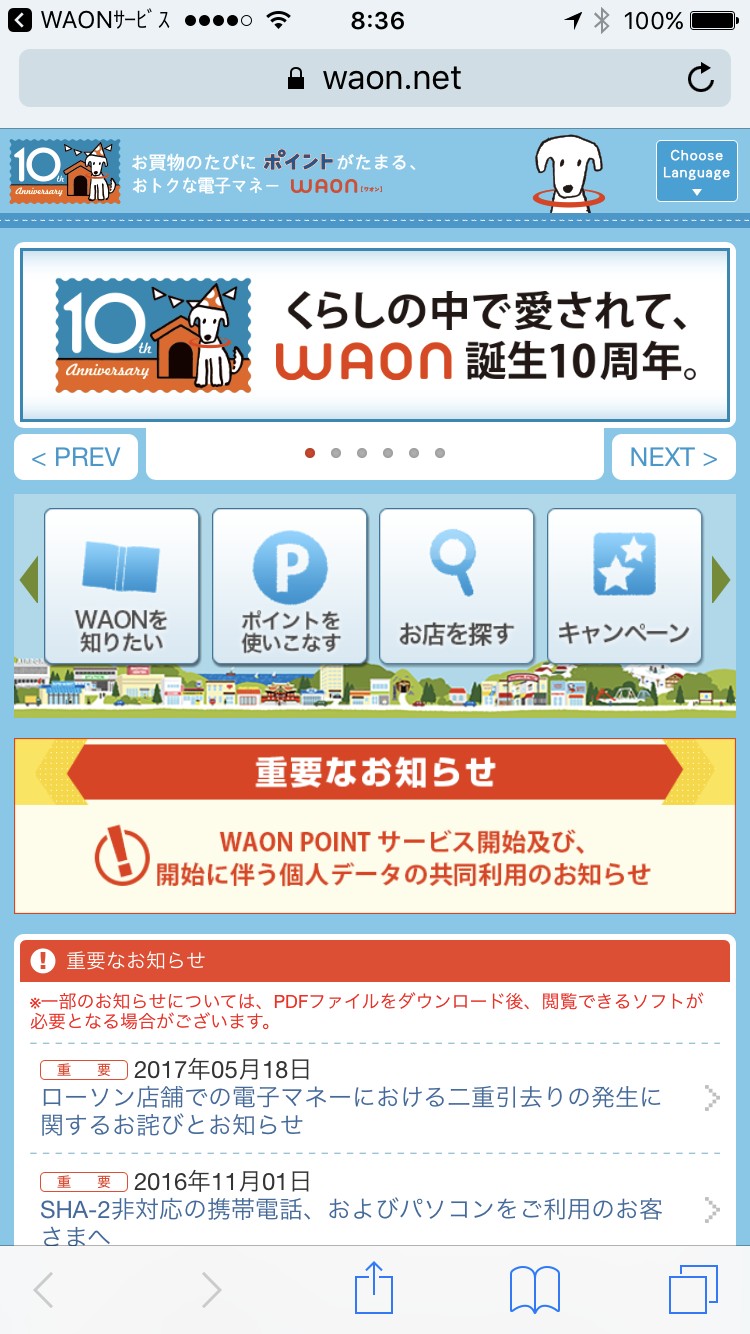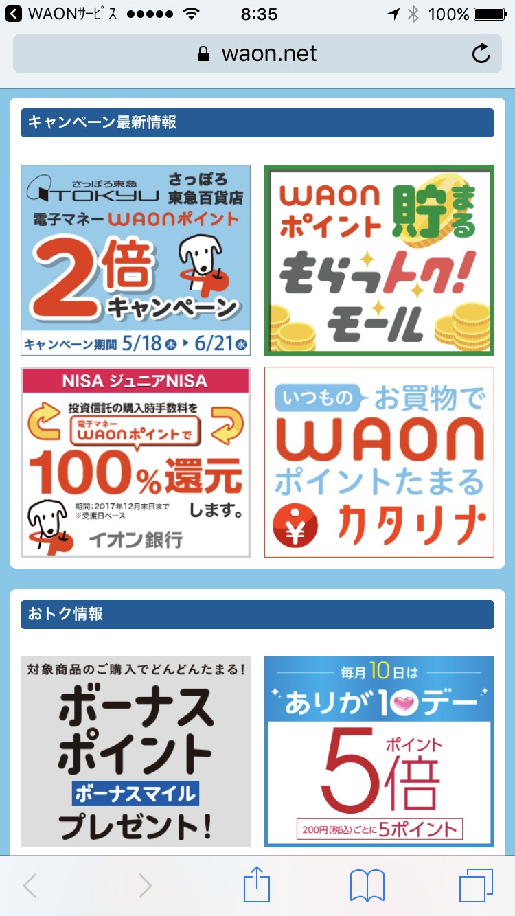 WAONのチャージをする際などはWAON公式ページを経由する必要があるので、アプリからさっと操作できるとチャージの手間を減らせます。