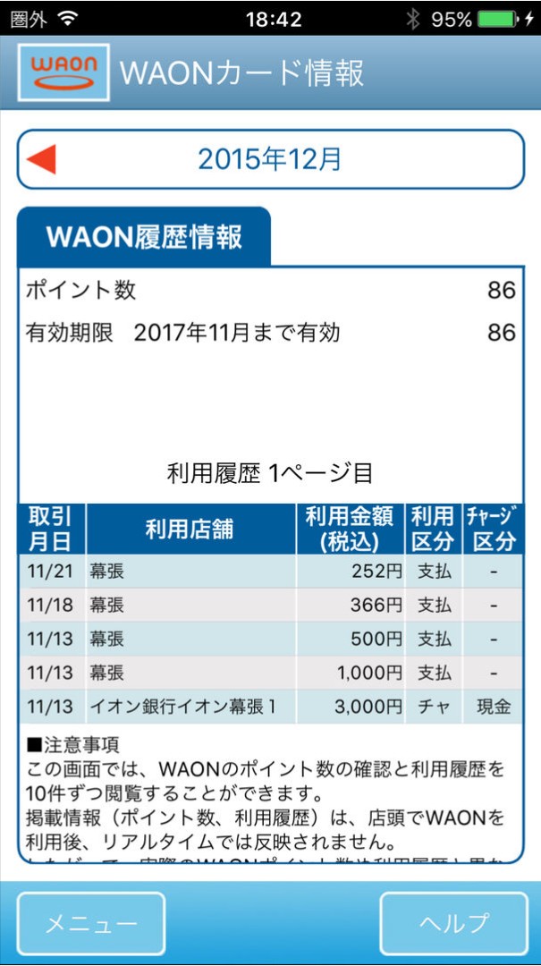 またWAONカードの利用履歴も分かるので、買い物内容の確認や、家計簿を付けにも役立ちます。